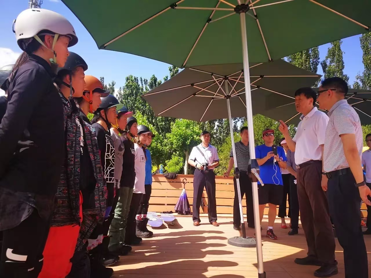 8月4日下午時分,國家體育總局高志丹局長在冬季運動管理中心楊東副主任的陪同下冒著酷暑專程來到奧森四季滑雪場,考察大眾滑雪場地建設以及中國國家隊非雪季訓練情況。星奧股份領導李明勇、張昕及世奧集團田巨清董事長、穆德林總經(jīng)理等相關領導在雪場迎接,熱烈歡迎高局一行的到來。