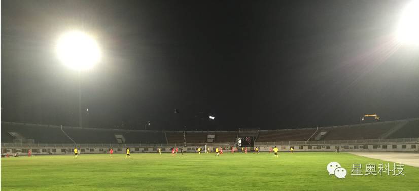 此次改造在原有四燈塔(塔高46米)的基礎(chǔ)上,采用了北京星奧科技股份有限公司生產(chǎn)的800W LED燈具288套,替換了原216套2000W金鹵燈,使照明總功率從475.2KW降低到230KW, 節(jié)能51.5%,同時采用星奧自主研發(fā)的智能控制系統(tǒng),可實現(xiàn)單燈控制,分路控制,多種場景一鍵切換(調(diào)光)等功能。整套照明系統(tǒng)完全滿足Ⅳ級TV轉(zhuǎn)播國家、國際比賽的照明要求。
