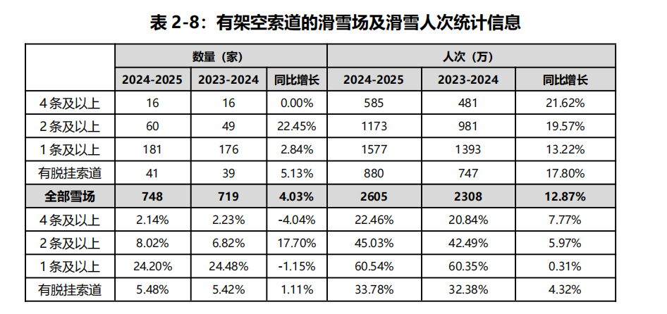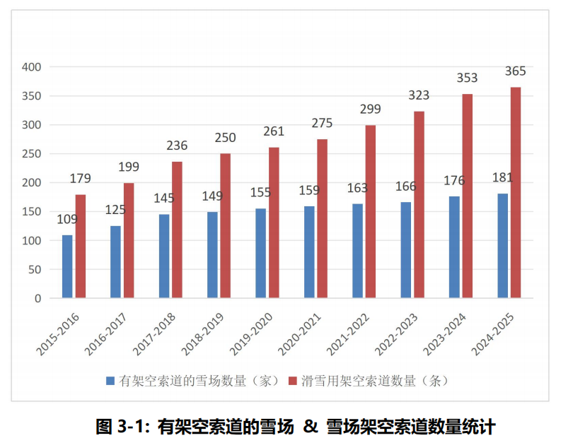 從數(shù)據(jù)來看,2024-2025雪季財年,全國新增12條滑雪架空索道,使得投入運營的架空索道總數(shù)達到365條,分布在181家雪場之中;同期新增魔毯170條,有效補充了初學者和兒童滑雪需求。值得注意的是,國內脫掛式索道發(fā)展加快,國產索道數(shù)量已達67條,已遠遠超過進口索道數(shù)量。