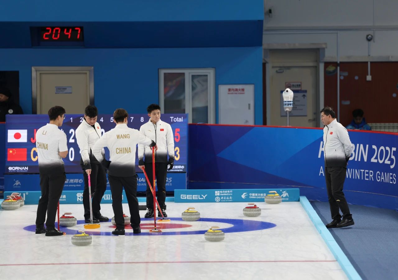哈爾濱亞冬會男子冰壺循環(huán)賽在2月12日迎來了中國隊對陣日本隊的比賽,這場比賽前,中國隊4戰(zhàn)全勝已經(jīng)鎖定B組晉級資格。開賽后由中國隊執(zhí)黃色壺先進(jìn)行投擲,經(jīng)過系列賽的磨合,隊員們之間顯得更加默契,大家從賽前熱身階段就保持著頻繁的交流,教練員也在熱身階段走上冰場和隊員們一起交流部署。